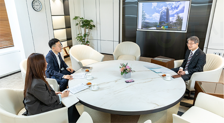 강승준 이사장은 3월23일 Front1에서 취임 후 첫 신보 사랑방 사보 인터뷰를 가졌다....